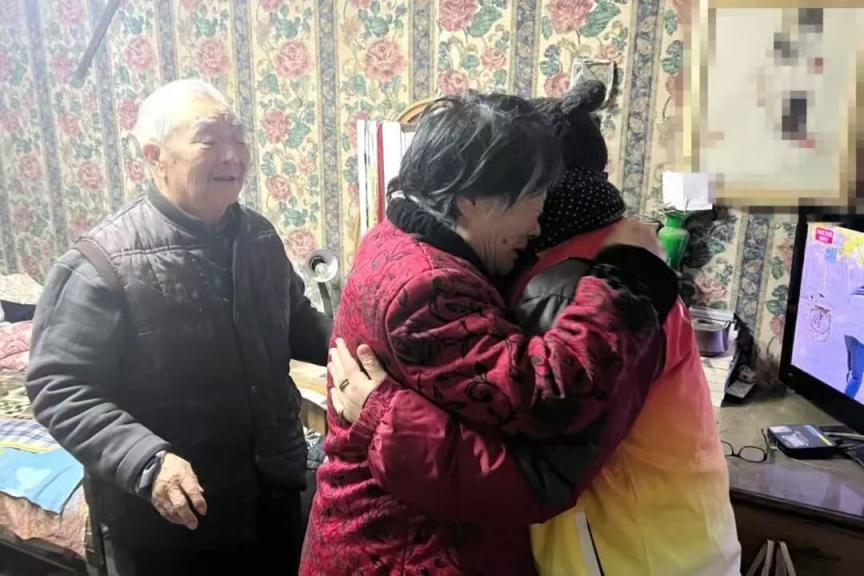 来言去语之间,薛大爷的老伴紧紧拉住了曹晖的手,感动得落泪,给了曹晖一个结结实实的拥抱,于是也就有了文章开头的那张照片。