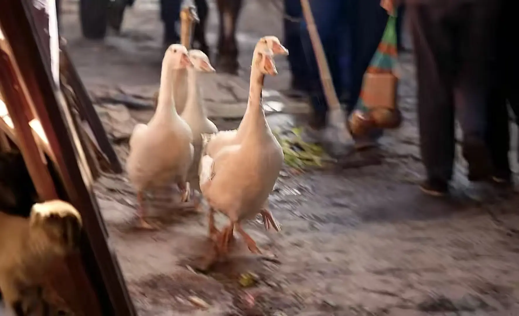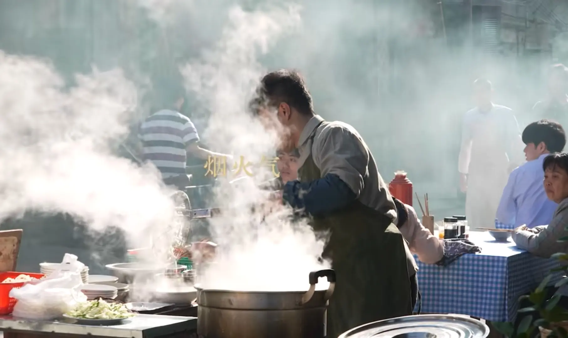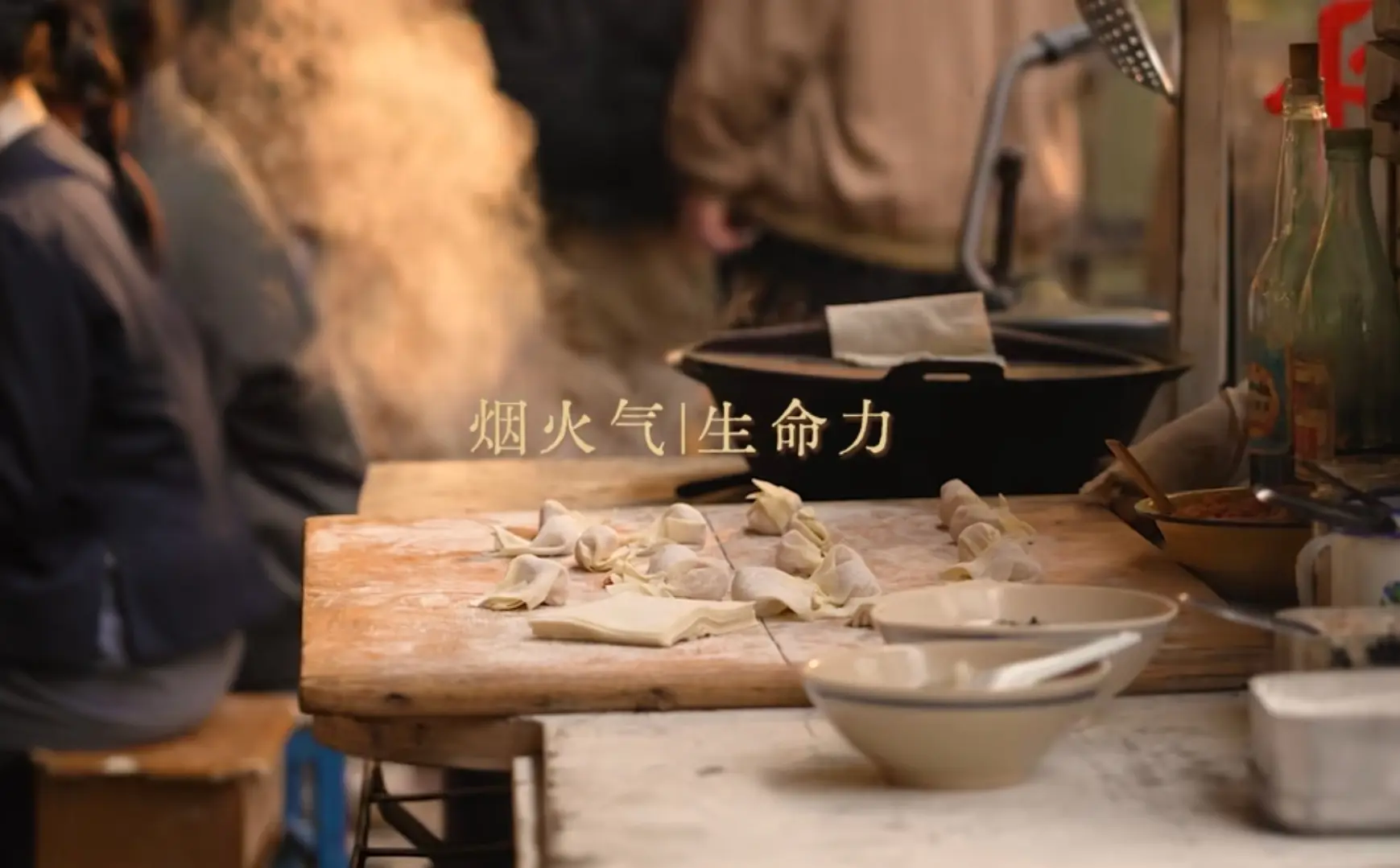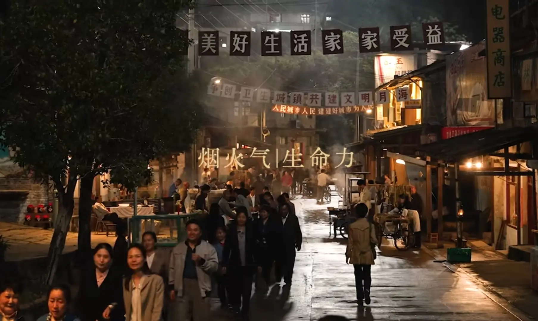 还有推着木轮车的小贩穿梭其中,身影错落交织,连空气里都像飘着攒动的人影。