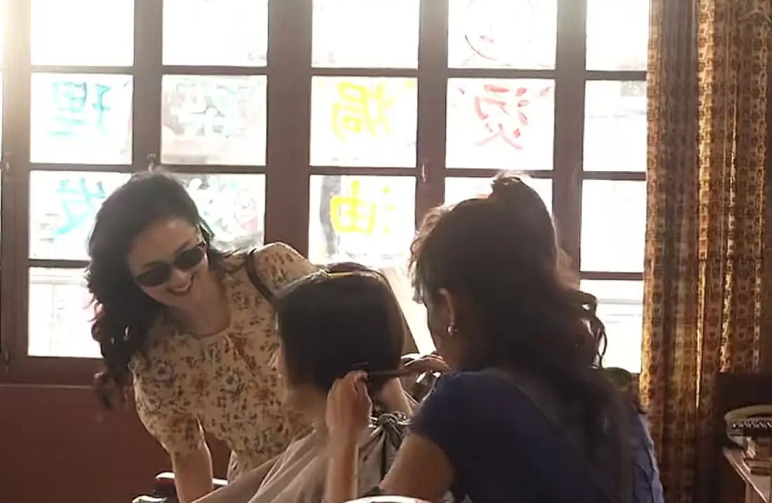 天花板上的老式吊扇灯、长条形荧光灯管,都是当时美发店的主流照明与通风设备。
