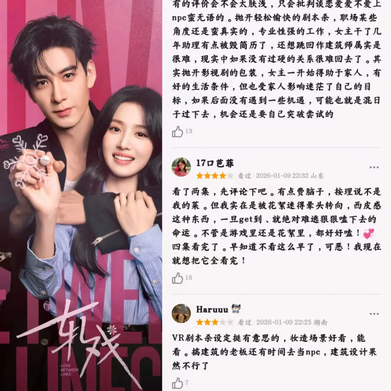 还有刚刚开播的赵又廷和张子枫主演的悬疑犯罪剧《秋雪漫过的冬天》。