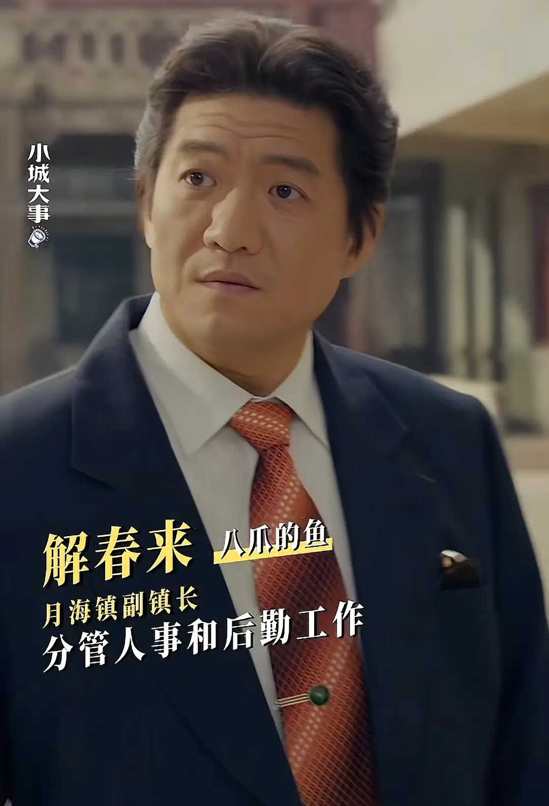 陈明昊演的解春来是八面玲珑、精于算计的副镇长,他自己家开的有厂,所以要稍稍比这里其他人有钱些,穿的衣服呢也更讲究。