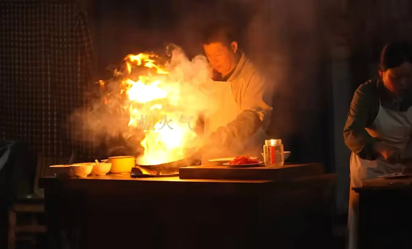 厨子挥舞着手里的黑铁锅,颠勺时窜起的金黄火焰,把海鲜、时蔬翻炒出滋滋的声响,成了小镇烟火气里最浓的一笔。