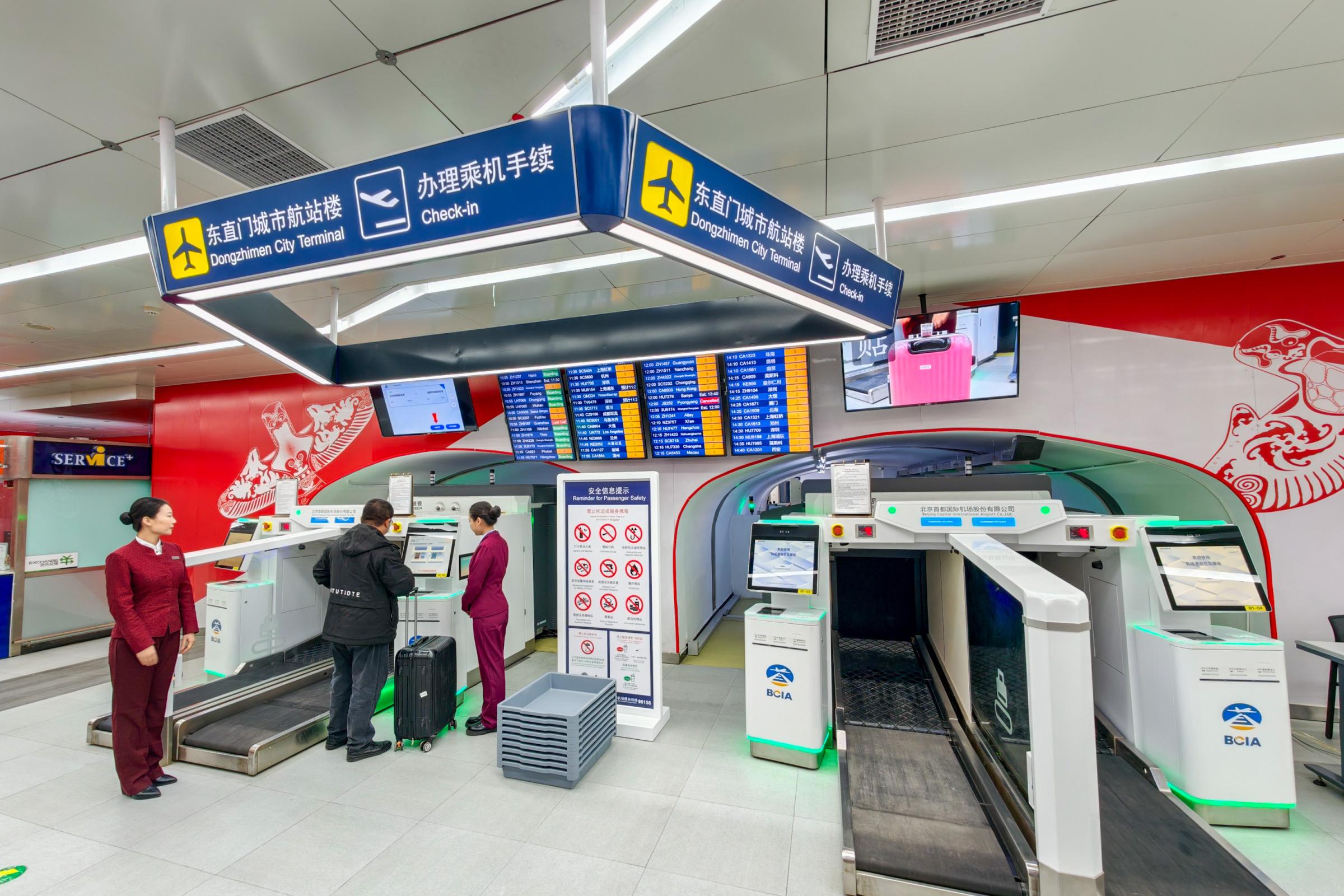 从今天起,搭乘地铁首都机场线赶飞机的旅客,可以在东直门站提前自助值机并办理托运手续,一身轻松前往机场了!