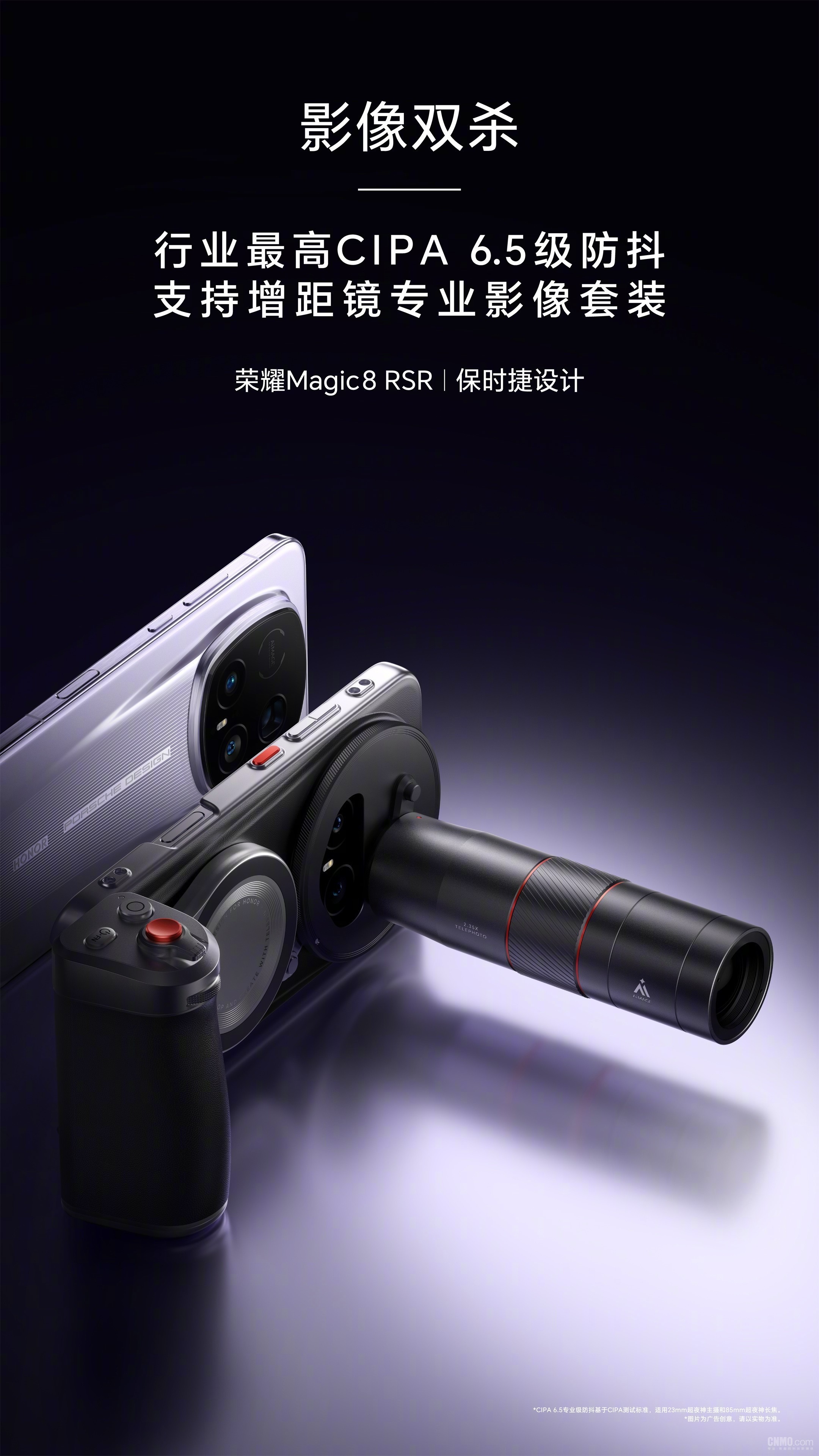 近日,荣耀官方正式宣布,荣耀Magic8 RSR保时捷设计将首发行业最高水平的CIPA 6.5级防抖,同时支持增距镜专业影像套装。